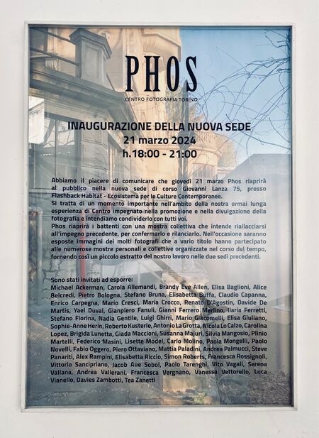 Mostra collettiva in occasione dell'apertura di PHOS Centro Fotografia Torino nella nuova sede in c/so Giovanni Lanza 75, nell'Area di FLASKBACK HABITAT Ecosistema per le Culture Contemporanee in Torino.